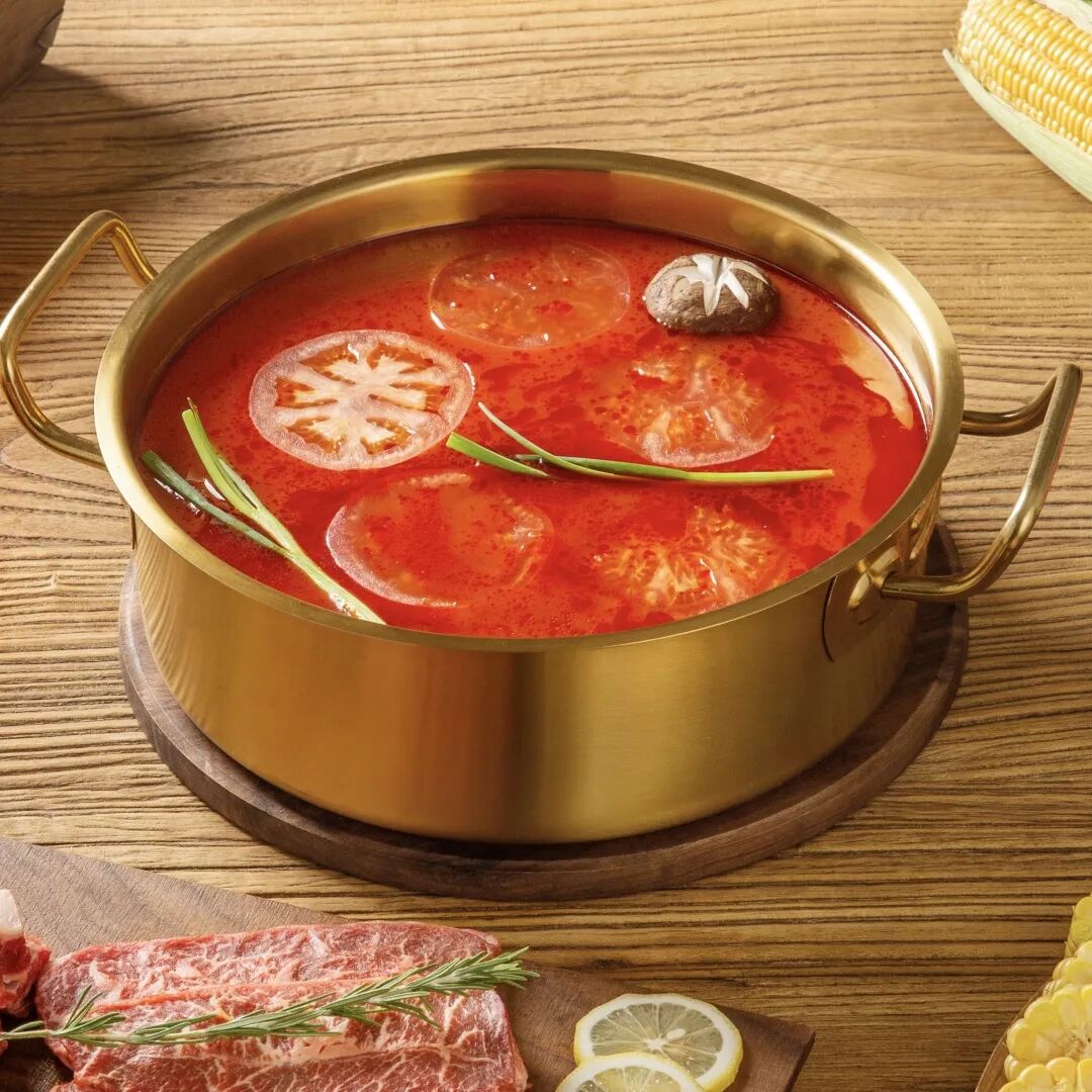 日光金番茄汤番味浓郁,自然果香,为团圆餐桌增添更多温暖。金番茄汤沸后涮煮牛肉、羊肉等肉菜,能最大程度激发食材的好味,搭配玉米、南瓜等蔬菜,鲜甜又开胃,为团圆聚餐注入更多活力。