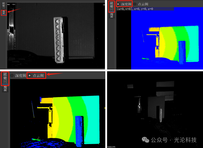 预览图像类型可选深度图、灰度图、点云图、 2D表面叠加深度图。