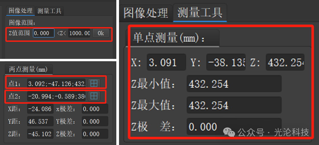 提供测量及图像处理工具:图像处理、单点测量、两点测量、平面度/共面度测量