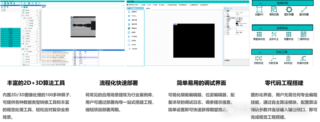 开放式软件功能布局,实现2D、3D 两类解决方案+N 个算法功能模块组合,对工业自动化领域多个行业3D解决方案的落地提供了强有力支撑。