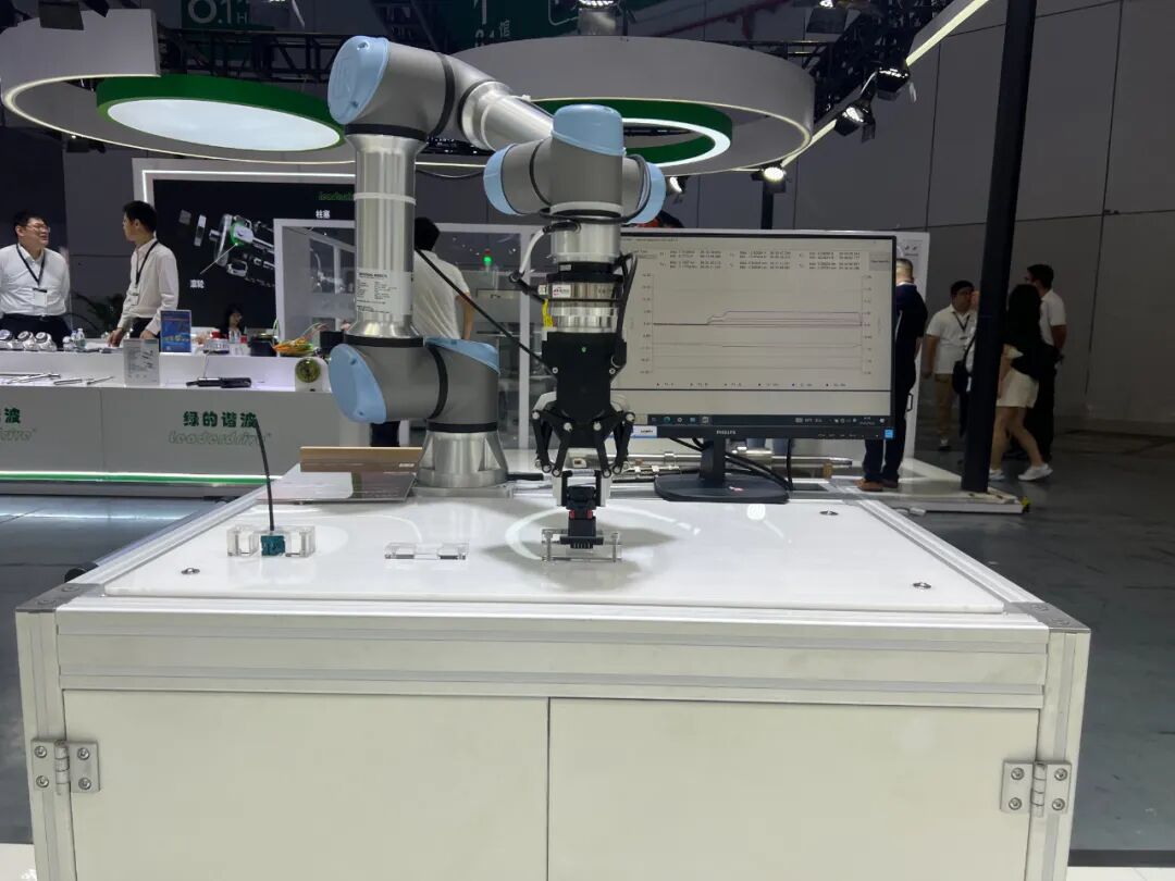 如果说医疗站展现了“精准”,我们的力控视觉装配工作站则诠释了“灵活”。该工作站中,视觉系统快速扫描定位,力控末端根据反馈调整角度,轻轻一推就将带弧度的电子元件“卡”进精密凹槽,全程无磕碰、无卡顿。