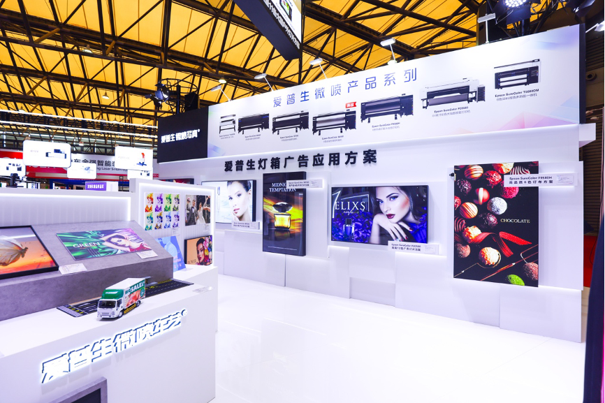除Epson SureColor S8180新品外,爱普生在2025上海国际广告展现场还展出了针对户内外广告应用的全系家族产品,包括基于Epson SureColor S9180输出的高质量11色大型户外广告方案与白墨应用方案,Epson SureColor P20580 12色高端广告打印方案,Epson SureColor B9580户内广告应用等。