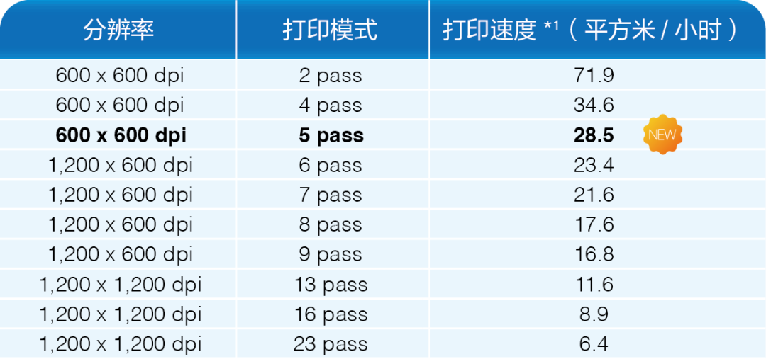 *1 此速度基于线条图打印得出,打印介质为背胶车贴,具体打印速度可能因用户环境区别而不同。
