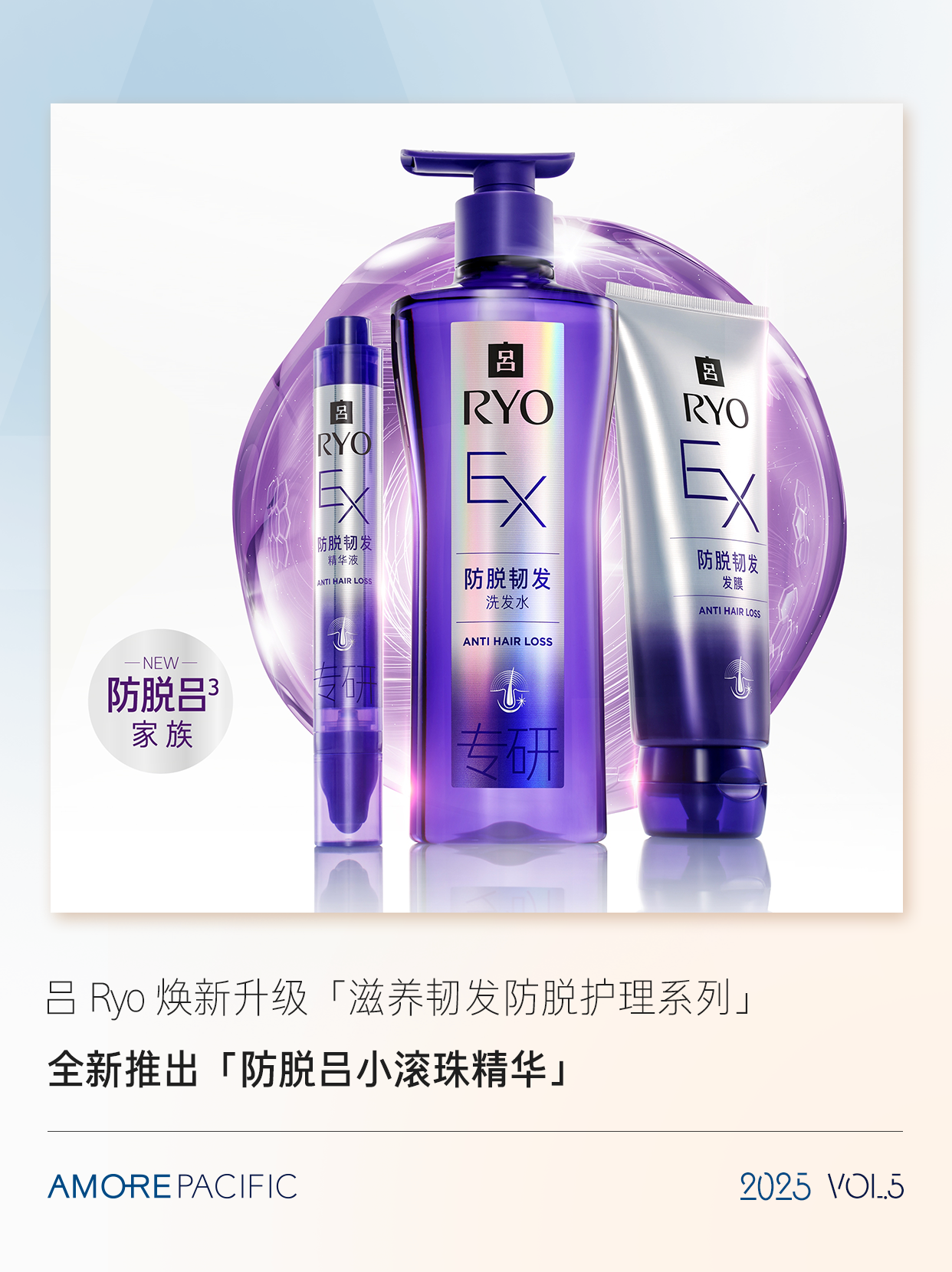 9月,吕Ryo焕新升级滋养韧发防脱护理系列,并发布全新防脱吕小滚珠精华(吕滋养韧发防脱护理精华液)。焕新升级的防脱吕洗发水和精华持有新一代防脱国妆特证,为消费者带来更卓越的防脱护理方案。