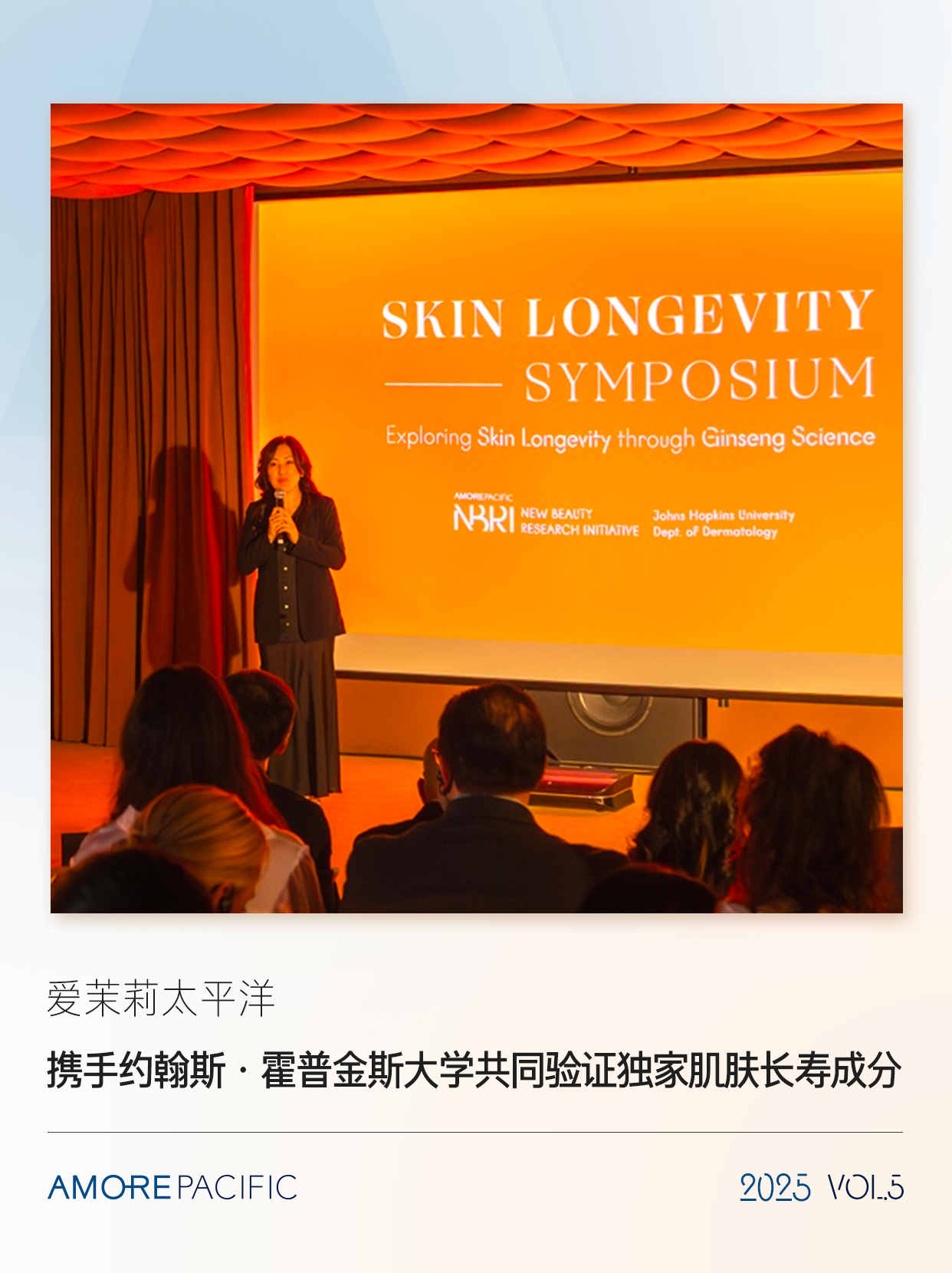 10月13日,爱茉莉太平洋以“肌肤长寿(Skin Longevity)”为主题在美国纽约举办研讨会,围绕独家肌肤长寿成分的功效发表了爱茉莉太平洋与约翰斯·霍普金斯大学共同研究的验证结果。
