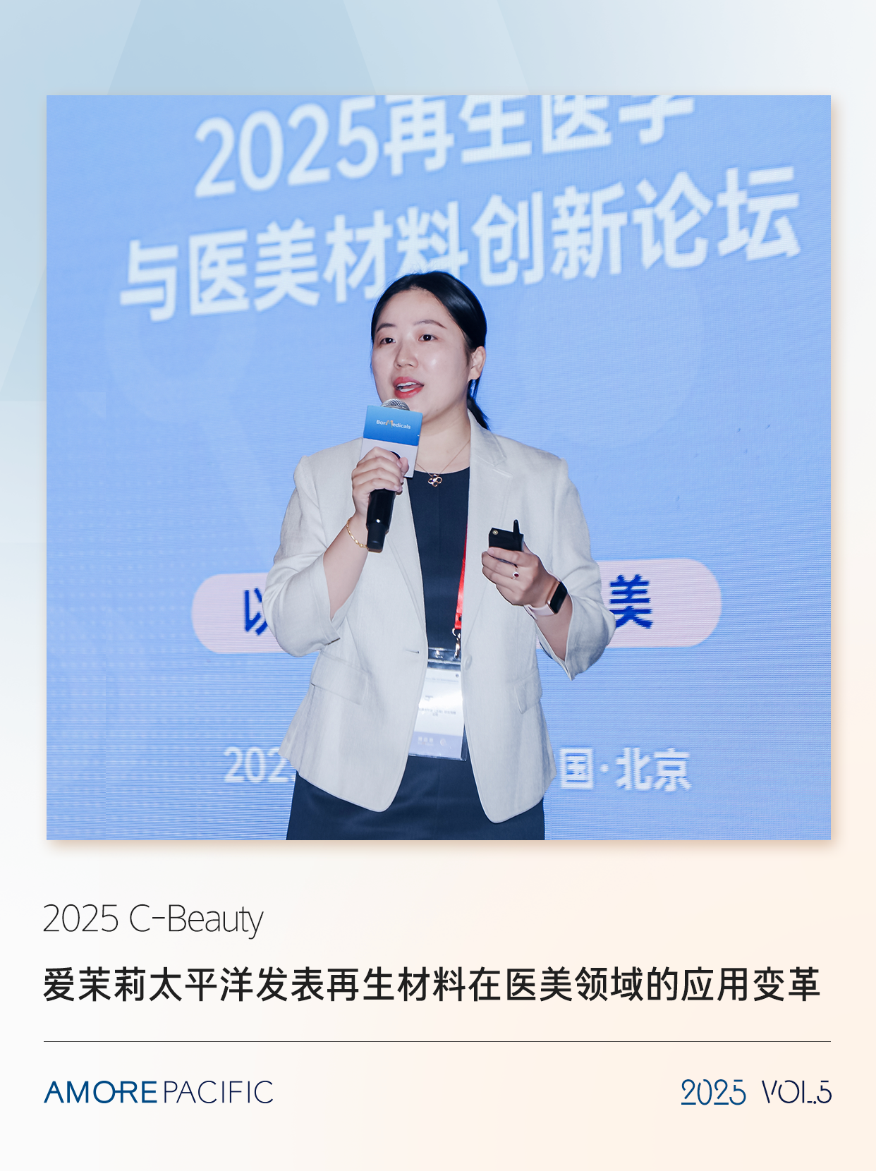 9月12日,爱茉莉太平洋(上海)研发中心首席研究员于敏,在“2025 C-Beauty再生医学与医美材料创新论坛”发表题为“再生材料在医美领域的应用变革”的研究成果,重点介绍了公司在泛医美护肤成分开发领域的研究突破。