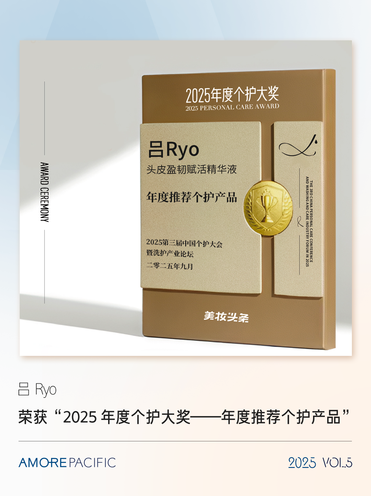 9月,吕Ryo凭借全新吕头皮盈韧赋活精华液(橄榄吕头皮精华),荣获美妆头条“2025年度个护大奖——年度推荐个护产品”,焕活头皮屏障健康,助力实现“内外稳盈”。