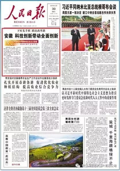 安徽海思达机器人有限公司荣登人民日报头版头条