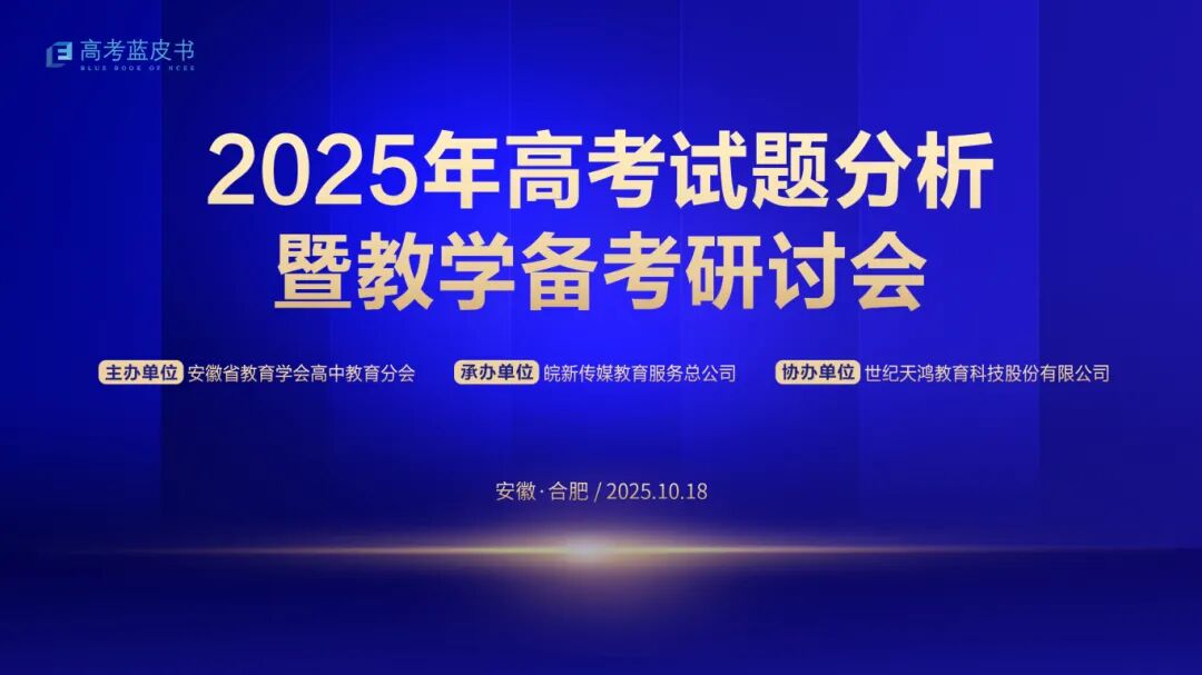 本次研讨会由安徽省教育学会高中教育分会主办,皖新传媒教育服务总公司承办,世纪天鸿教育科技股份有限公司协办,旨在整合优质教育资源,搭建交流平台,推动安徽省高中教育教学质量与高考备考水平进一步提升。