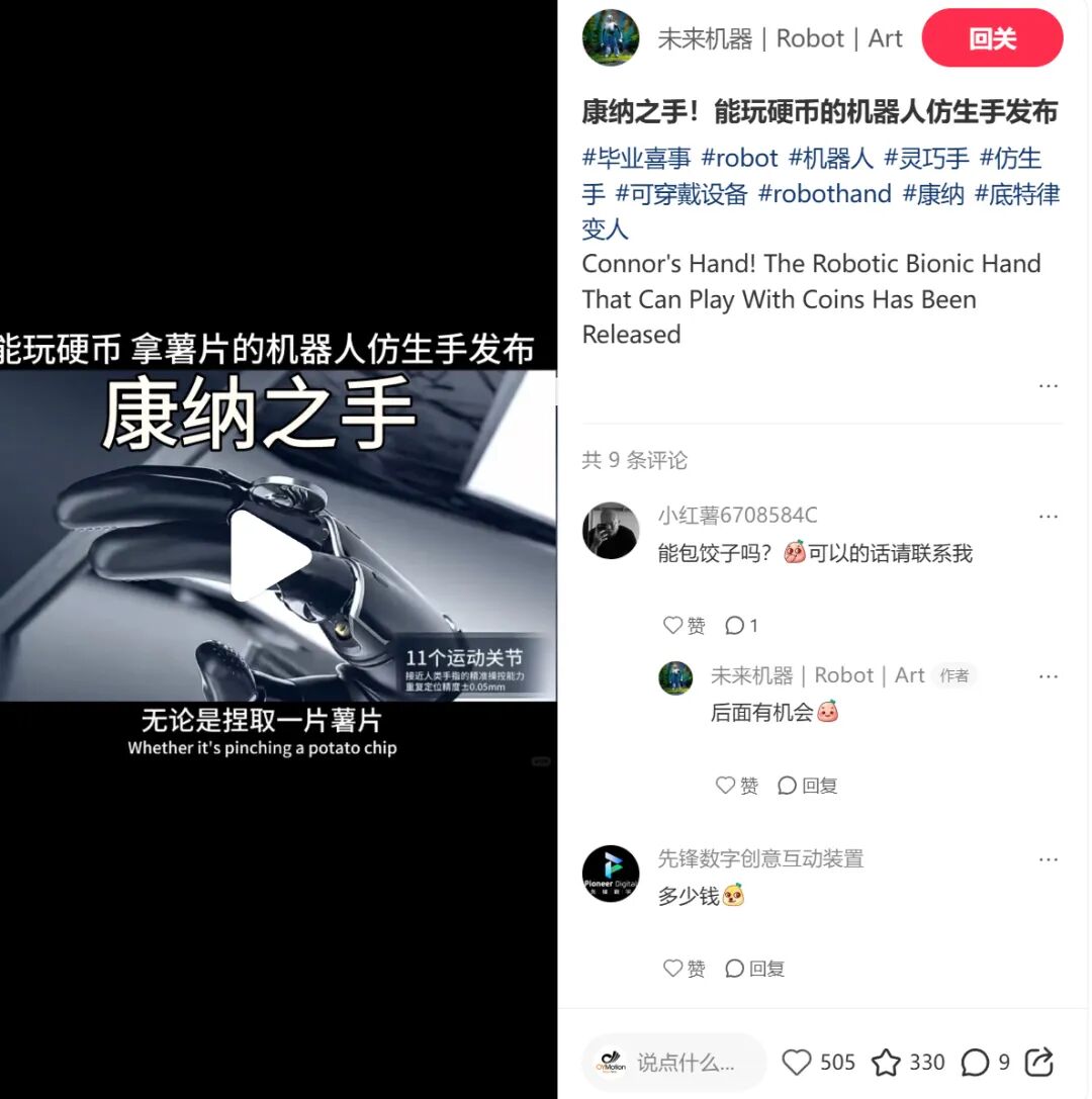 在社交媒体平台上,傲意科技同样引发了热烈反响。在微博、微信、抖音、小红书、快手等主流社交平台上,傲意科技相关的微视频收获点赞、收藏和评论数量超 1000 +,平均曝光量达 5W 次,ROHand系列产品引广泛关注。