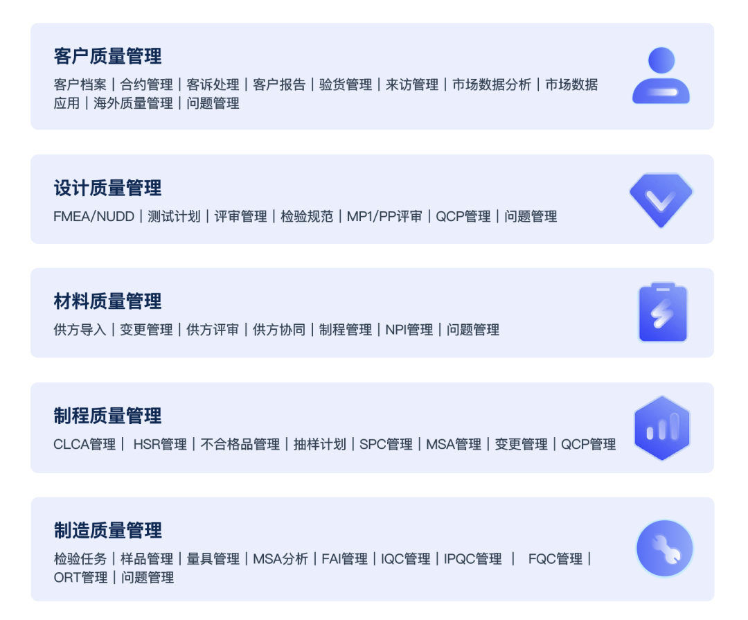 以PDCA(计划-执行-检查-处理)为核心循环改进,实现“产品质量+质量运营”的系统性落地与动态迭代。方案优势在于横跨研发、生产、供应链,用标准化流程和可视化集成打通数据孤岛,让质量管控有据可依、有源可溯。同时,高度灵活、扩展性强、融入AI能力,可精准适配企业质量管理需求。