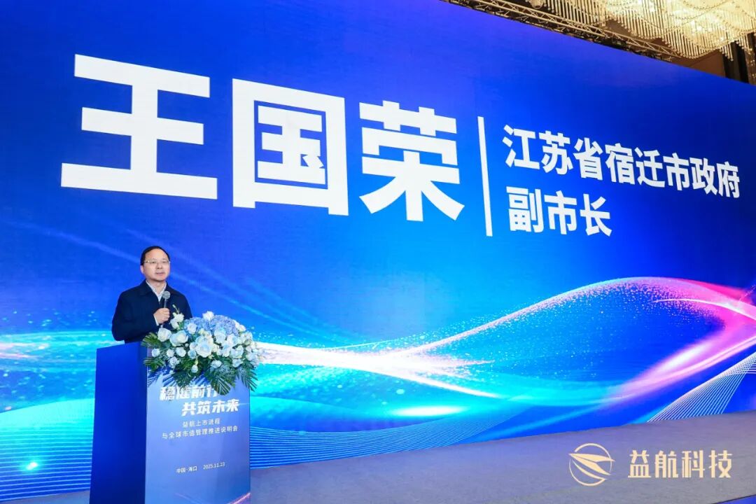 2025年11月23日,“益航科技上市进程与全球市值管理推进说明会”在海口希尔顿酒店圆满举行。宿迁市政府副市长、苏宿工业园区党工委书记兼管委会主任、苏州工业园区党工委副书记王国荣先生出席活动并致辞。