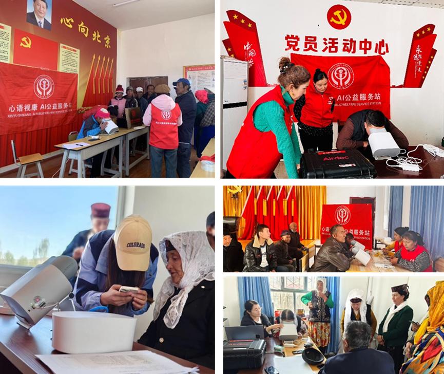 这一技术突破不仅为医疗领域带来变革,更为公益健康事业开辟了新路径。以 AI 技术赋能公益健康服务,既提升了服务效率与质量,又突破地域、时间限制,让偏远地区群众也能便捷享受先进医疗技术服务。例如,眼明心安公益项目组、“心语视康”AI公益服务站借助鹰瞳AI眼底相机,为西藏、新疆、云南等地区群众提供眼健康及慢病监测服务,有效弥补边疆地区医疗资源短板,进一步增强了当地群众的健康意识。