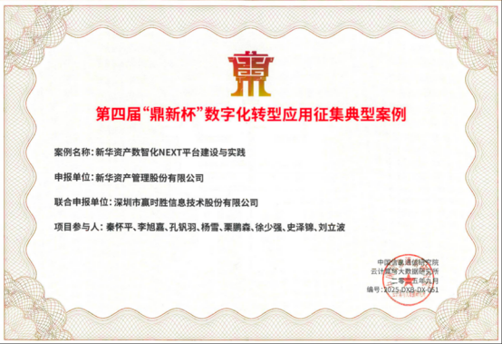 【喜讯】国家级认可!赢时胜携手新华资产共建NEXT平台,入选“鼎新杯”典型案例!
