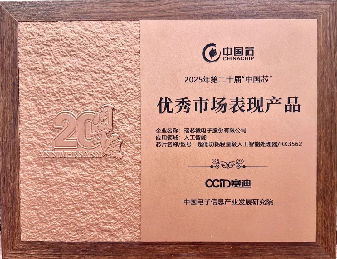 “中国芯”评选活动由中国电子信息产业发展研究院主办,是国内集成电路领域极具影响力和权威性的行业奖项之一。“优秀市场表现产品”奖旨在表彰在市场中取得显著经济效益和行业影响力的国产芯片产品。RK3562的脱颖而出,表明其精准的产品定位与强大的市场竞争力获得产业链上下游的广泛认同。