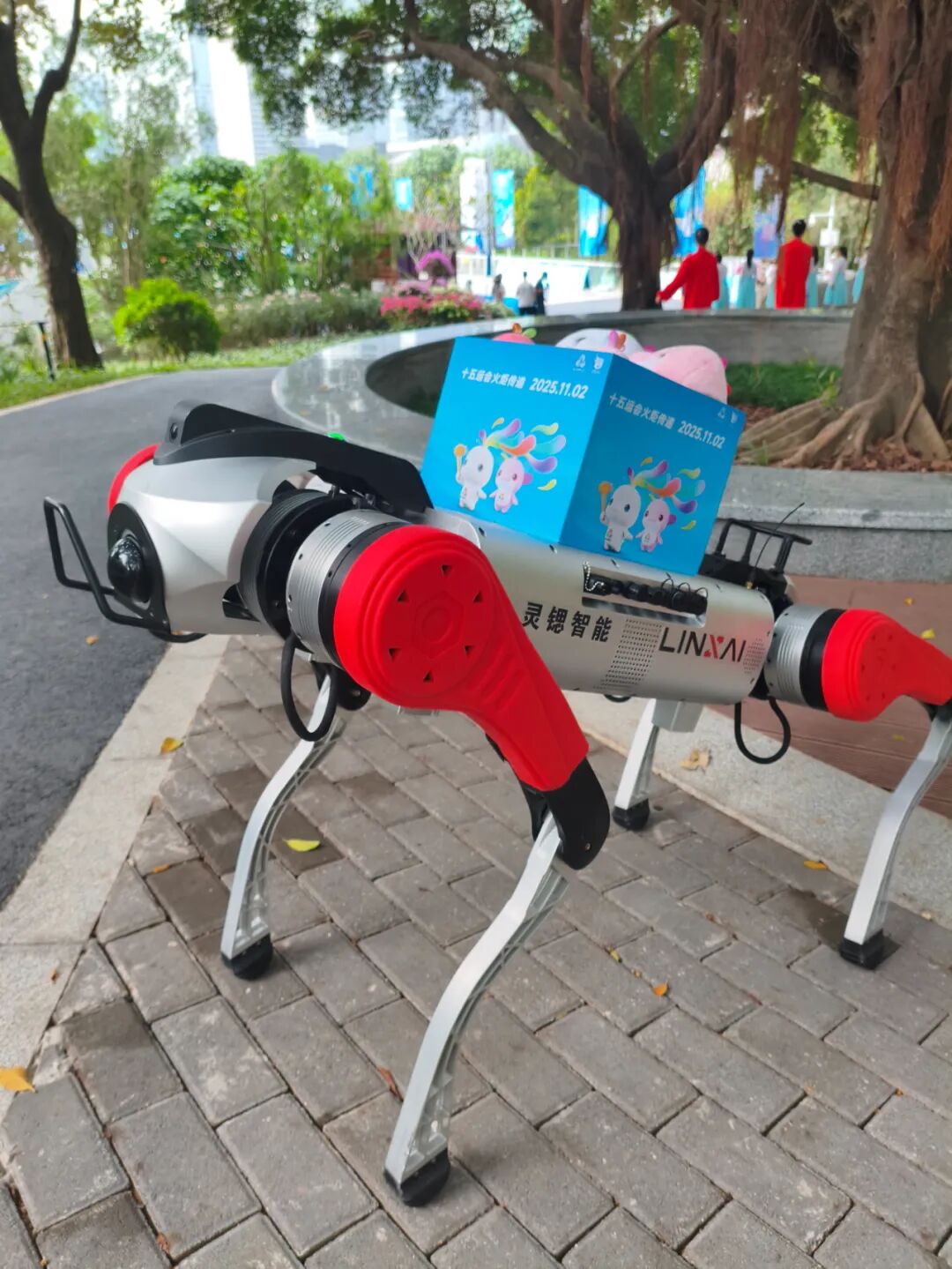 在第十五届全运会火炬传递中,灵锶智能研发的D50型机器狗以其科技魅力成为独特亮点。这款重型智能机器狗,身背十五运吉祥物,以轻盈稳健的步伐行至火炬手面前,完成了时代科技与体育精神的历史性交付。