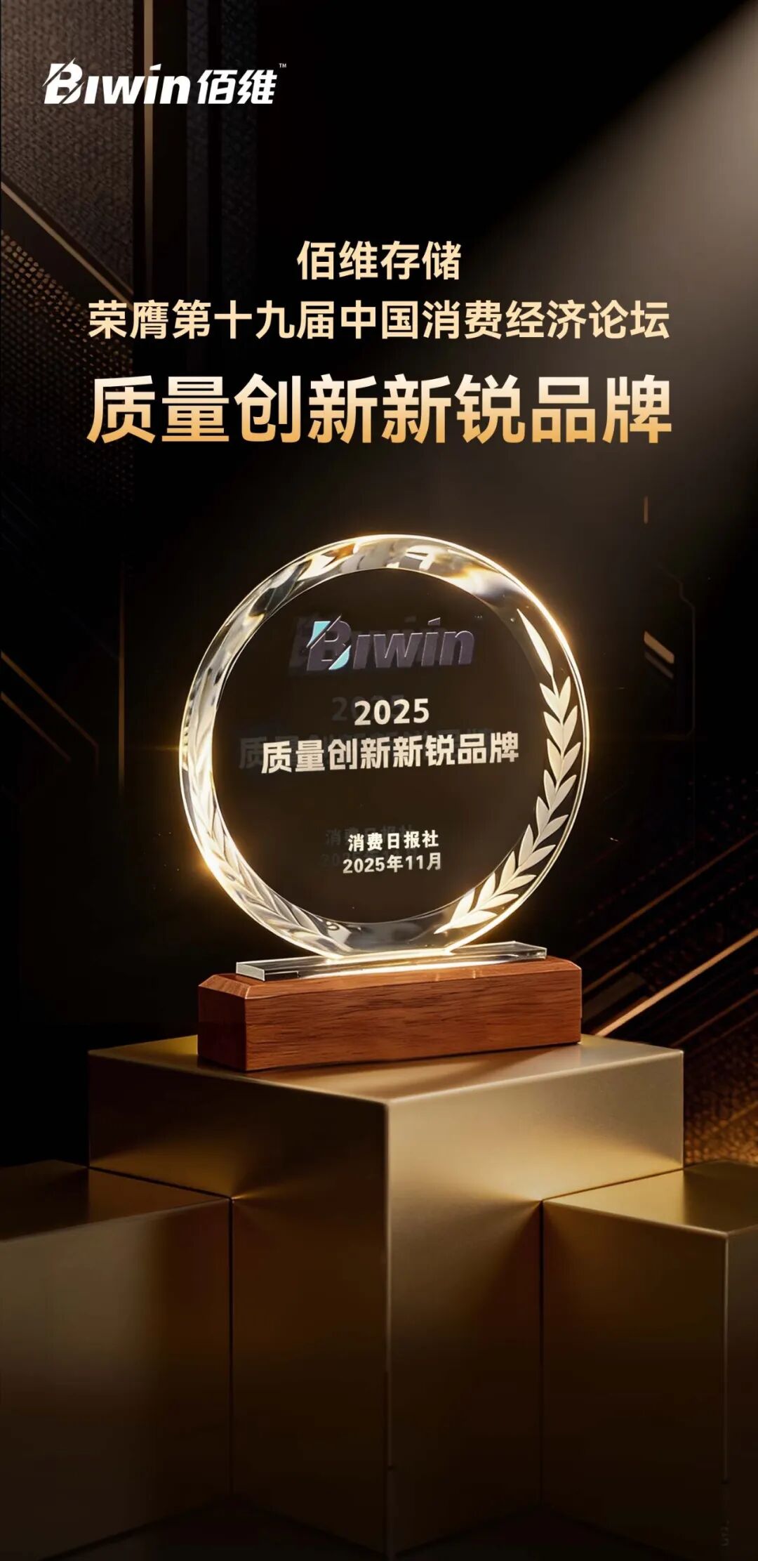 荣耀时刻 | 佰维存储荣膺第十九届中国消费经济论坛“2025质量创新新锐品牌”
