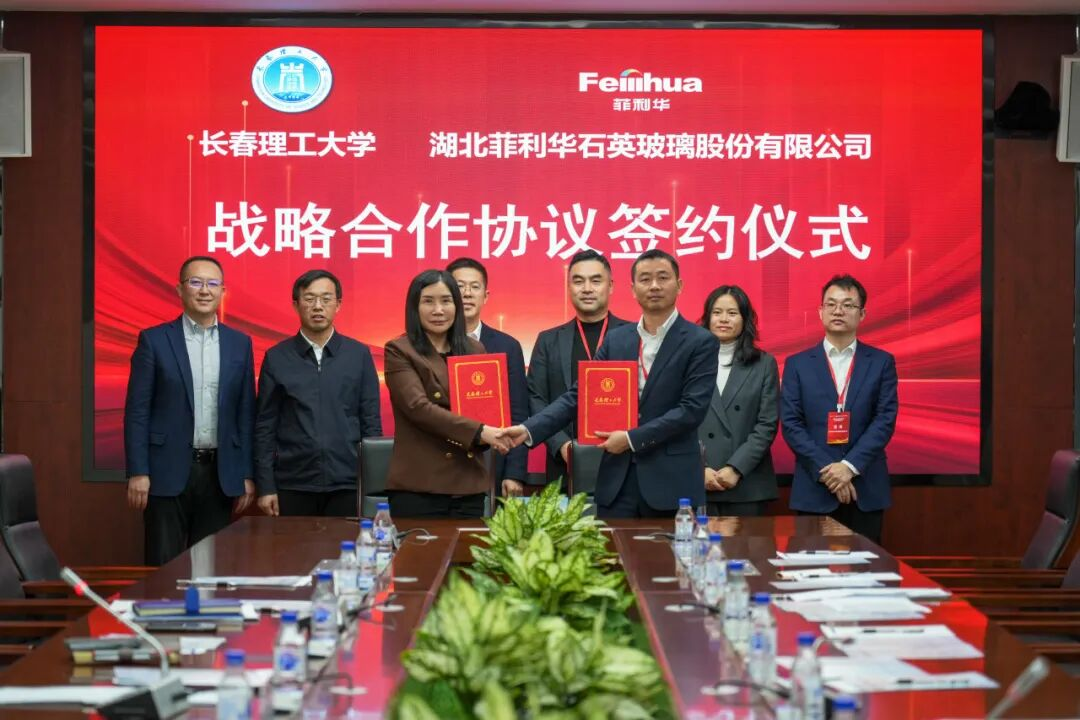 会上,长春理工大学校长郝群代表学校同成都光明光电有限责任公司、湖北菲利华石英玻璃股份有限公司签署战略合作协议。协议的签署,标志着特种光学玻璃材料技术创新中心建设迈入深化协同、聚力攻关的新阶段。