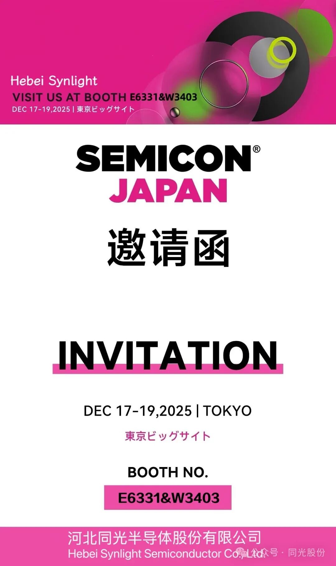 同光股份诚邀您莅临SEMICON JAPAN 2025