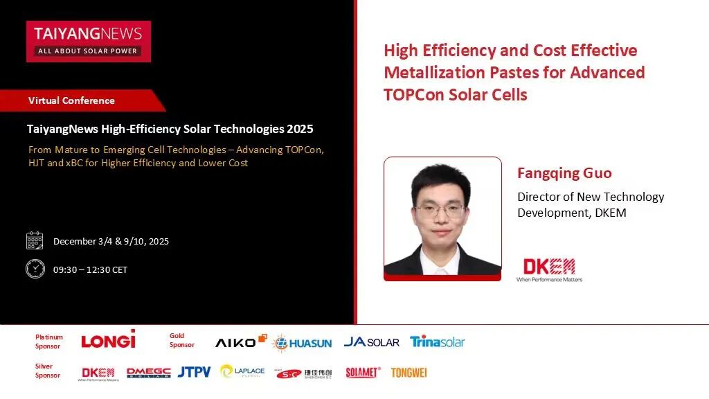 12月 4 日,TaiyangNews 年度旗舰光伏技术会议 “High Efficiency Solar Technologies 2025” 在线举行。