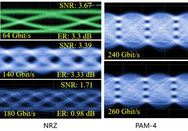图3 NRZ与PAM-4数据传输模式下的光眼图测试结果
