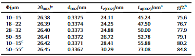 表1:2500°C和2900°C石墨化MPGF的晶体参数(摘要)