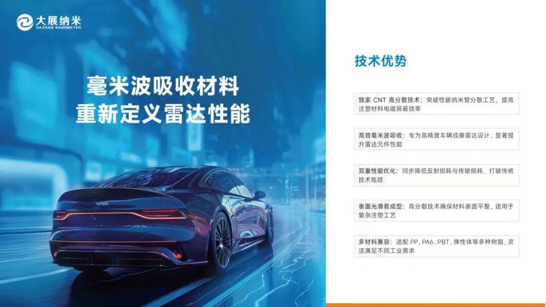 作为本次展会的重磅亮点,大展纳米推出的毫米波吸收材料凭借独家技术优势,引发高度关注。