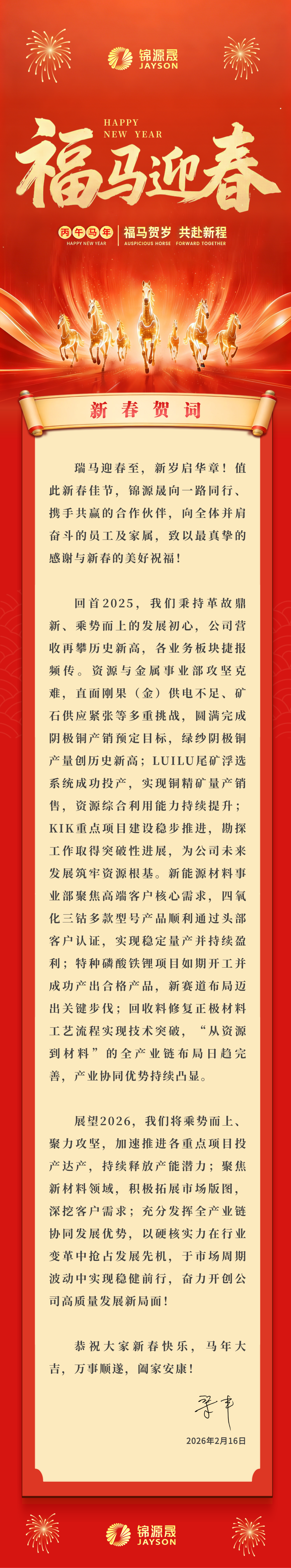 董事长/总裁 梁丰2026新春贺词