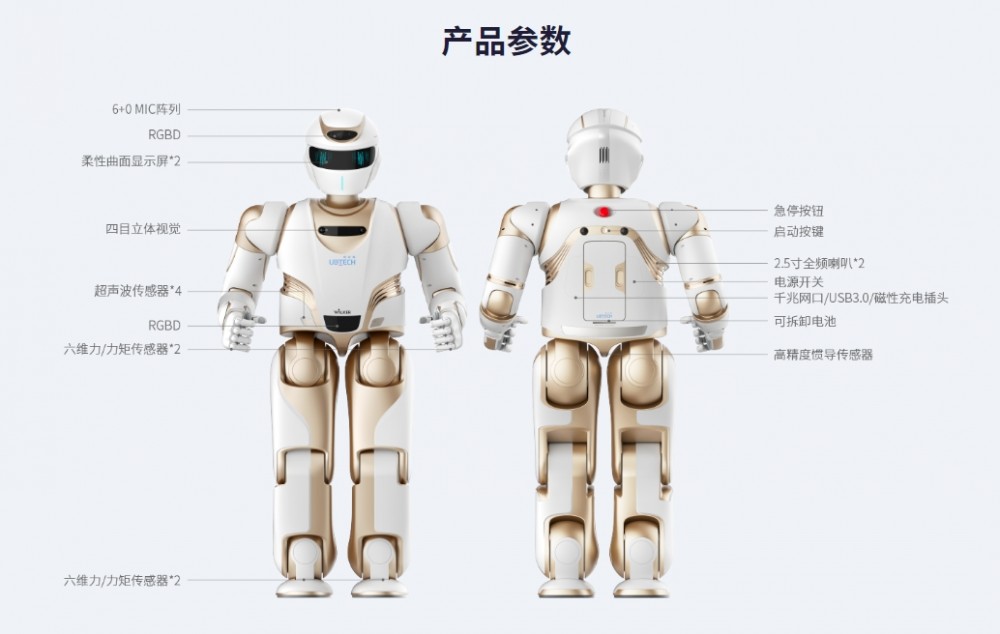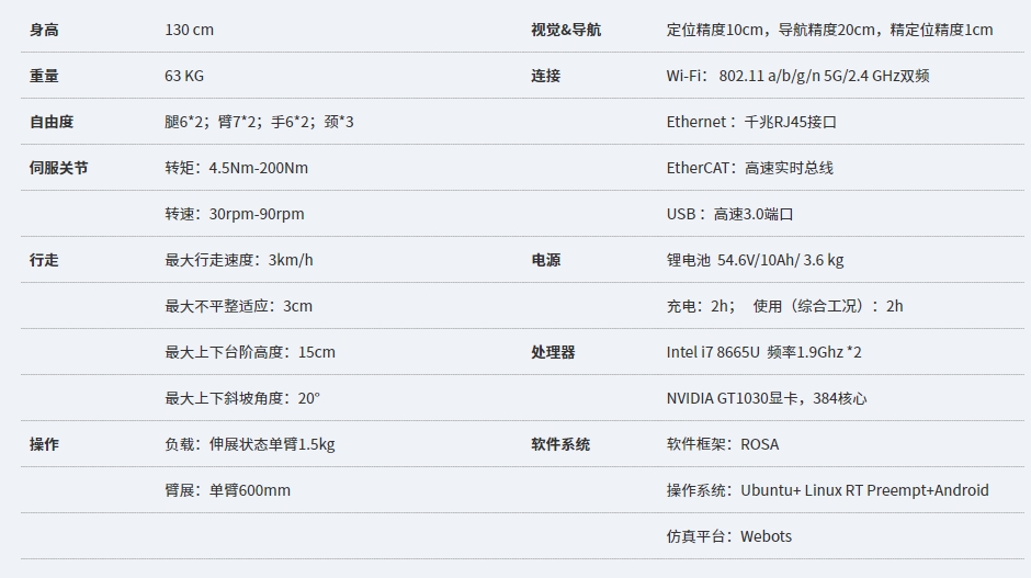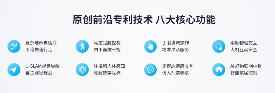 中国原创前沿科技,集六大AI技术于一身,搭载高性能伺服关节以及多维力觉、多目立体视觉、全向听觉和惯性、测距等全方位的感知系统;全面升级视觉定位导航和手眼协调操作技术,自主运动及决策能力大幅提高,实现平稳快速的行走和精准安全的交互,可在多种场景下提供智能化、有温度的服务。