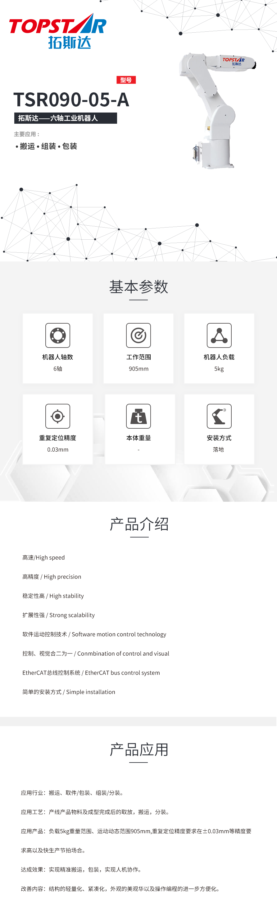 广东拓斯达科技股份有限公司(SZ.300607)是国家级高新技术企业,专注于工业机器人的研发、制造、销售,致力于打造系统集成 + 本体制造 + 软件开发三位一体的工业机器人生态系统和整体自动化解决方案。