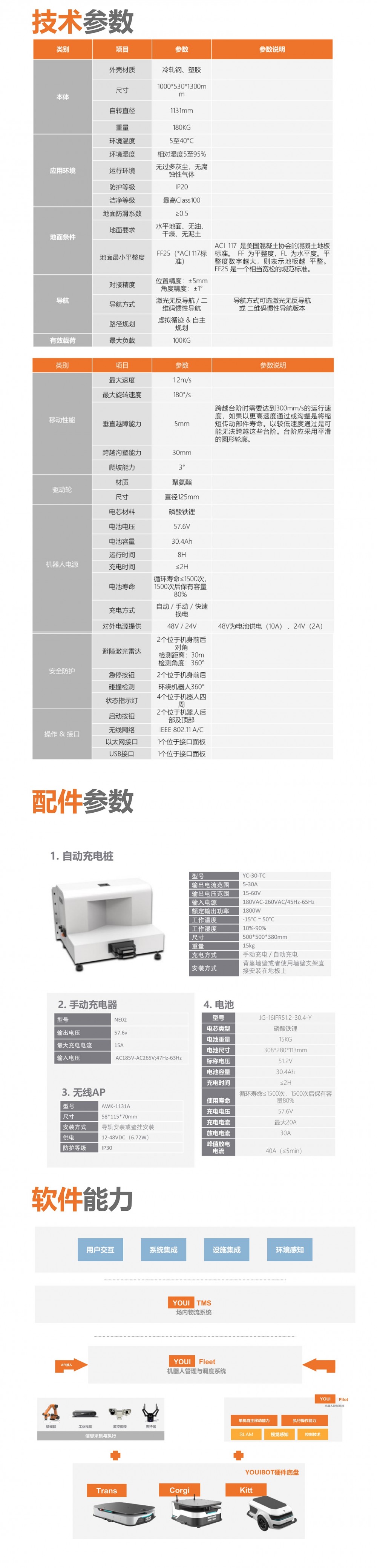 易于部署、可多机协同作业,配合自主开发的 YOUI Fleet 分布式智能调度系统,帮助客户实现机器人的大规模调度,最高支持100台。
