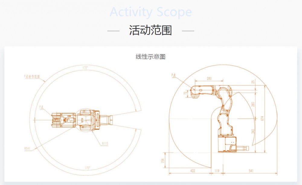 结构精确,占地面积小,中空结构手腕,胜任狭窄区域作业。