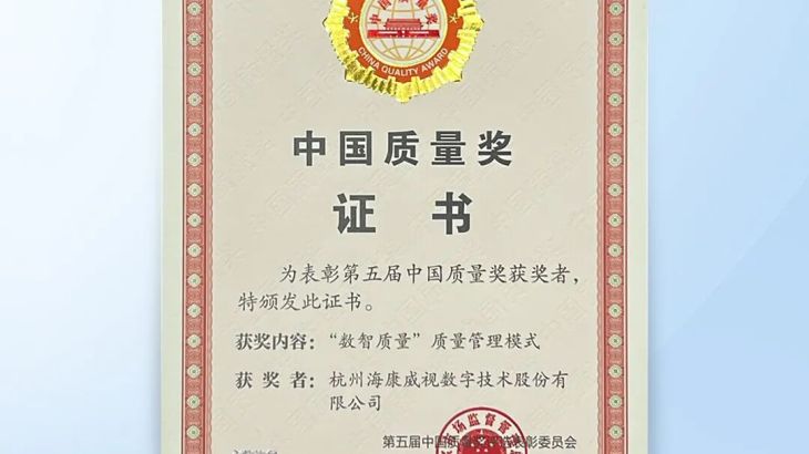 海康威视凭借“数智质量”质量管理模式获得中国质量领域最高荣誉
