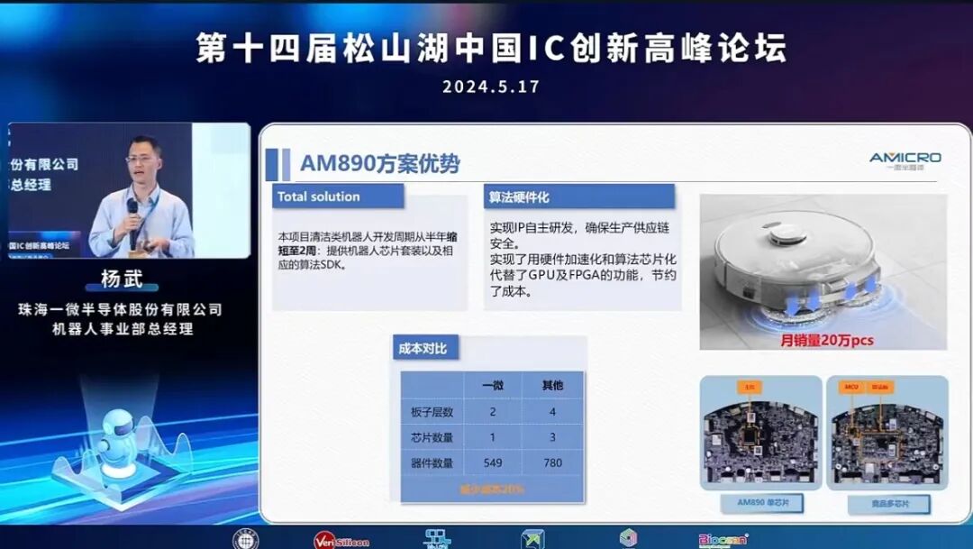 近日,由中国半导体行业协会集成电路设计分会和芯原微电子(上海)股份有限公司主办的“第十四届松山湖中国IC创新高峰论坛”在东莞松山湖举办。在论坛上,一微半导体机器人事业部总经理杨武做了主题为“AM890:机器人SLAM专用芯片”的精彩演讲。