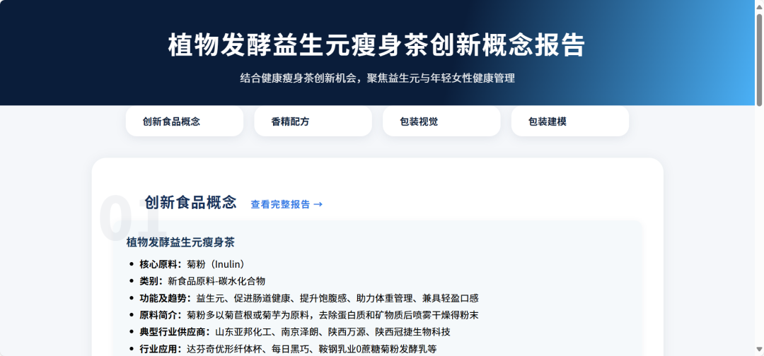 数据图表化、概念视觉化,猫鼬 AI 超级智能体将策略与执行无缝衔接,保证了策略执行的一致性。无需在多个孤立的工具间切换,即可在一个平台上完成所有工作。在产品研发和营销过程中,涉及到众多的数据和概念,如市场数据、消费者洞察、产品配方、营销策略等。猫鼬 AI 超级智能体能够将这些复杂的数据和概念以直观的图表、可视化的模型等形式呈现出来,让企业内部各部门之间的沟通更加顺畅,避免因信息理解偏差导致的执行失误。例如,在产品研发阶段,研发人员可以通过可视化的方式直观地看到不同配方对产品口感、营养成分等方面的影响;在营销阶段,市场人员可以清晰地了解营销策略在不同渠道的执行效果和预期收益。