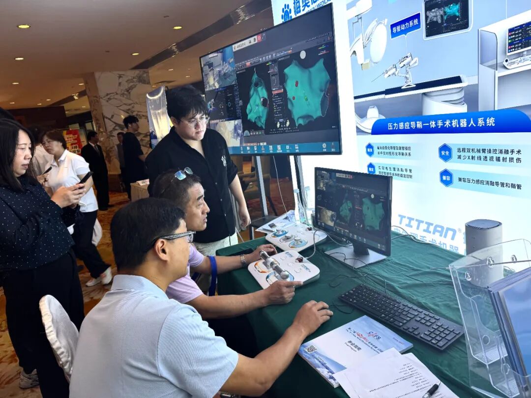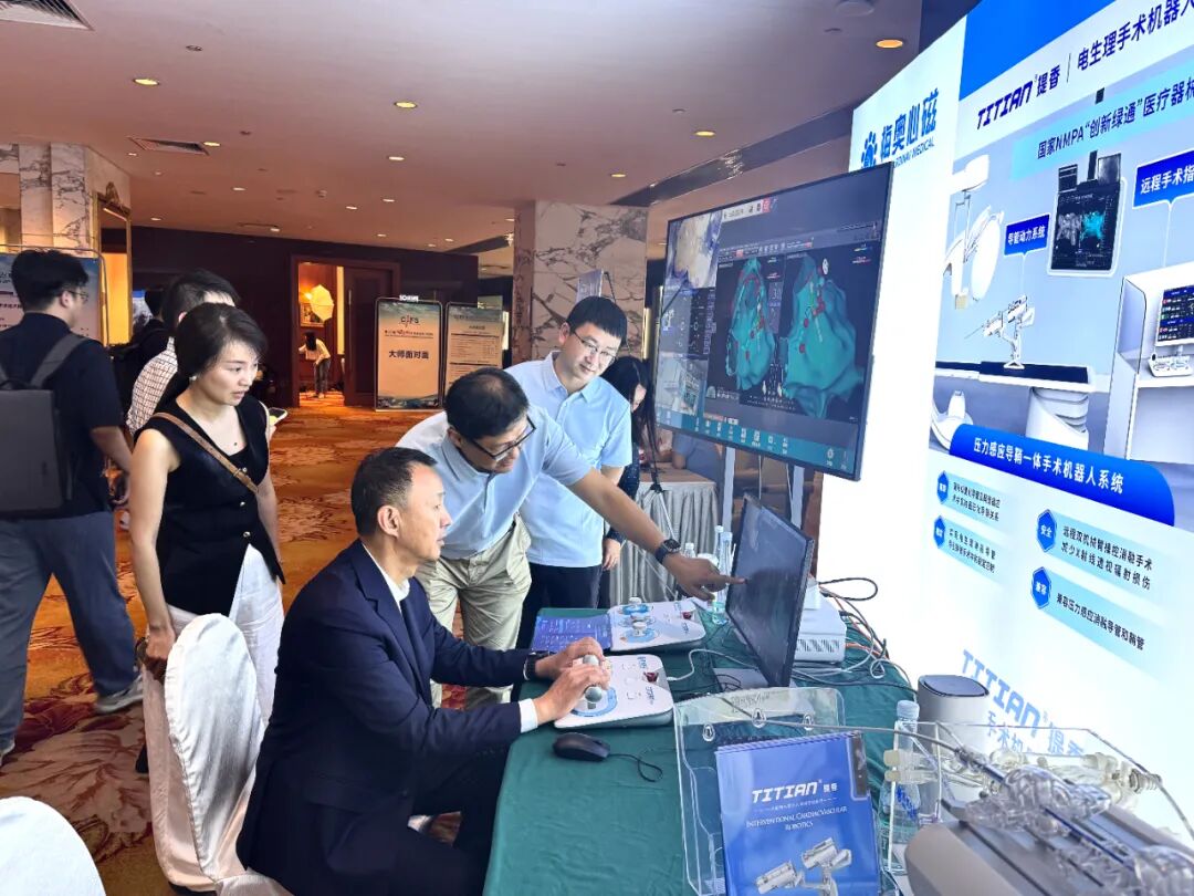 七月的大连,微风拂面、碧海蓝天,如痴如醉。 第23届大连房颤会于7月4日-6日迎来高光时刻,众多电生理从业人员和术者专家齐聚大连,群英荟萃。梅奥心磁的提香®房颤手术机器人,为与会专家提供了自动化、超远程辅助房颤消融全新解决方案,吸引了众多专家术者亲临体验,闪耀全场。有望通过全新的智能手术指挥操控,更加自动的导管辅助系统,突破物理空间的超远程手术体验,为房颤患者提供更安全,更有效的治疗方案,提高临床治疗效果,提升患者收益。 “心安处,有提香” 心脏介入手术机器人的本质是“医生的智能AI工具”。梅奥心磁致力于自动化、远程化的机器人房颤手术,拥有国内唯一进入创新绿通的心脏手术机器人产品,此次亮相2025大连房颤会的新款升级版房颤手术机器人,基于机器人和AI技术,全面提升房颤消融手术自动化、远程化水平。 除了进口磁导航产品,既往房颤消融手术需要依赖术者手动操作,术者需时刻双手把控导鞘管,操作时间长,稳定性要求高,易疲劳,且易受到射线辐射等。梅奥心磁开发的TITIAN提香®房颤手术机器人具有安全、精准、稳定、兼容等特点,可完美解决手动操作的局限性,操作稳定,解放双手;手柄式操作,可在导管室外远程完成消融手术,较少射线辐射,真正“心安处,有提香”。 提香®房颤手术机器人是国内首款心脏介入手术机器人领域NMPA创新绿色通道产品,已于2024年完成注册临床研究,研究结果喜人,目前正等待注册获批上市。