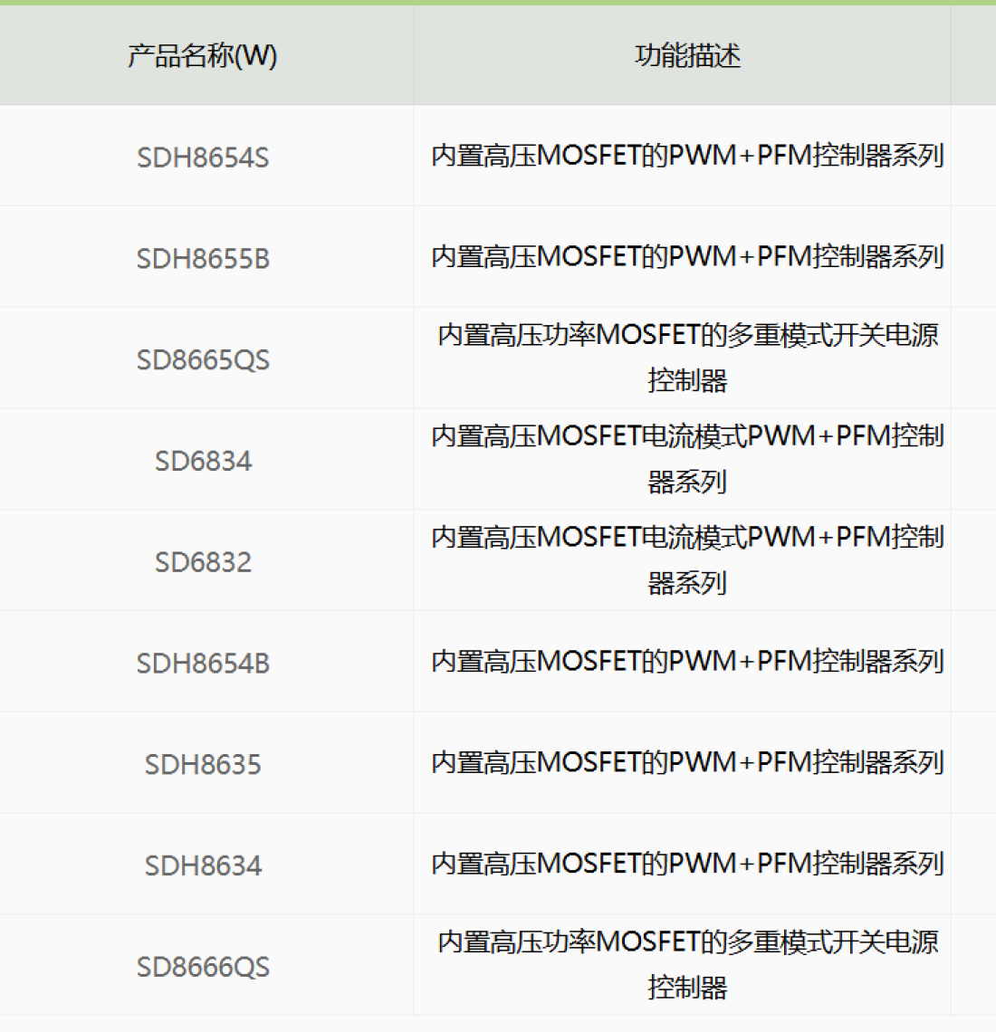 产品名称(W) | 功能描述 | 所属应用 |