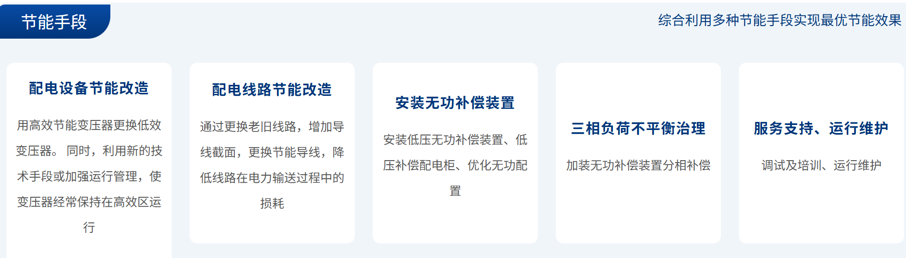 电网节能以节能降损为目标,是电网公司提质增效,落实“双碳”要求的专业化业务,也是实现“两个千分之三”节约电力电量等考核要求的关键抓手。电网节能服务以合同能源管理为主要业务实施模式,坚持“立足电网、依托电网、服务电网”的工作主基调,深入挖掘各省电力公司在新型电力系统建设中配网薄弱环节及发展掣肘,提供专业节能改造和能效综合治理解决方案,有效解决末端电压低、线损率高等突出问题,着力提升供电可靠性和电网能效水平,助力电网节能减排与电力保供。