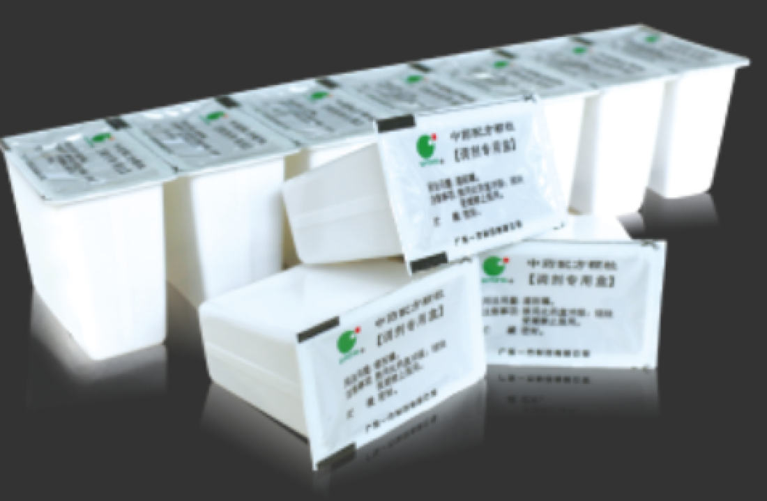 中药配方颗粒剂是通过中药配方机的智能化调配功能,将医生开出的电子处方通过系统自动传输到中药房发药机上,药房药柜上相对应药品的指示灯就会亮起来,药剂师根据药柜指示灯抽取药瓶插入操作台对应的接口上,中药配方机再将中药方剂准确计量,平均封装。不到十分钟,一副中药颗粒剂就调配完成了。