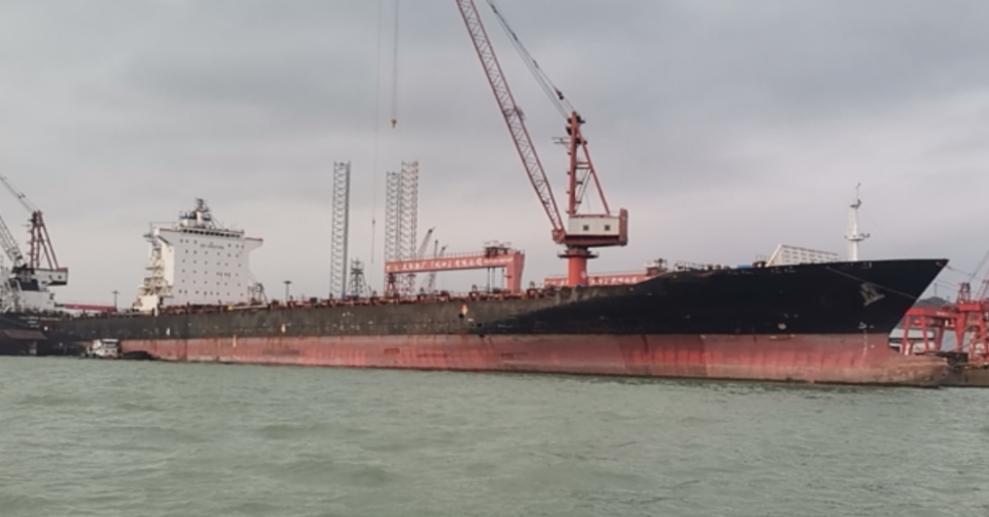 C 船首先在广东某港口停靠 12 小时。数据显示,它有严重的污垢。