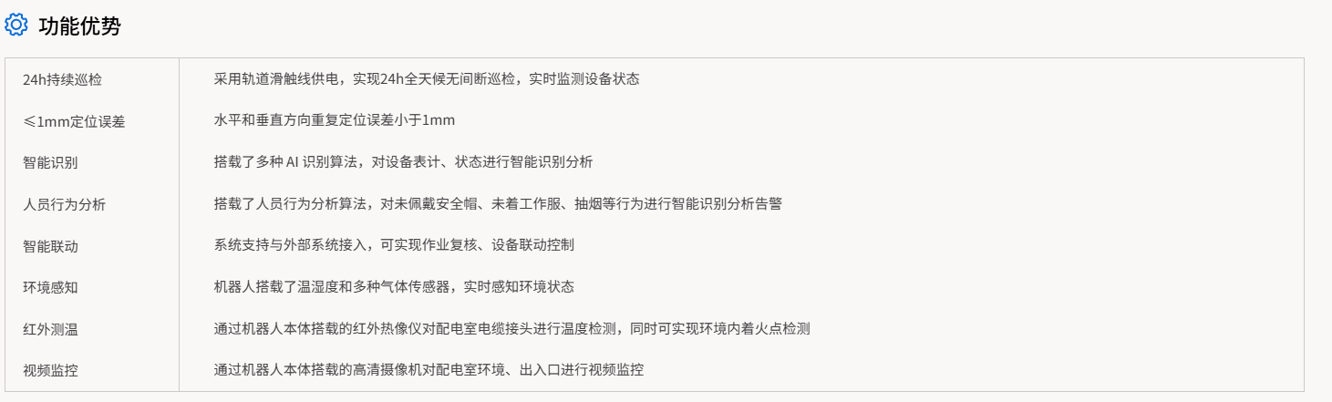 配电房巡检机器人搭载无人值守智控平台,可升降巡检。智控平台自主智能联动场景内 多机器人协作,多重数据采集分析,全环境监测预警,兼顾监测预警功能和网络联动无人化场景管理。