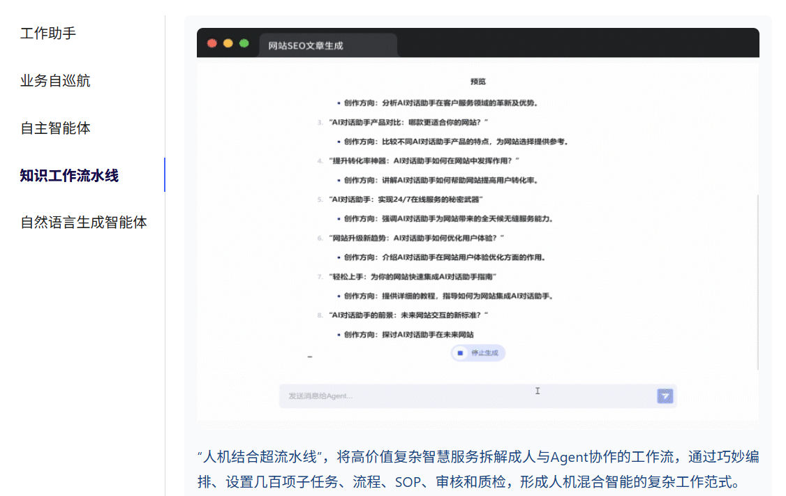 灵搭为企业级场景应用提供从 Agent 构建、智能协作到场景适配、持续进化的技术支撑,帮助企业知识工作流程自动化。