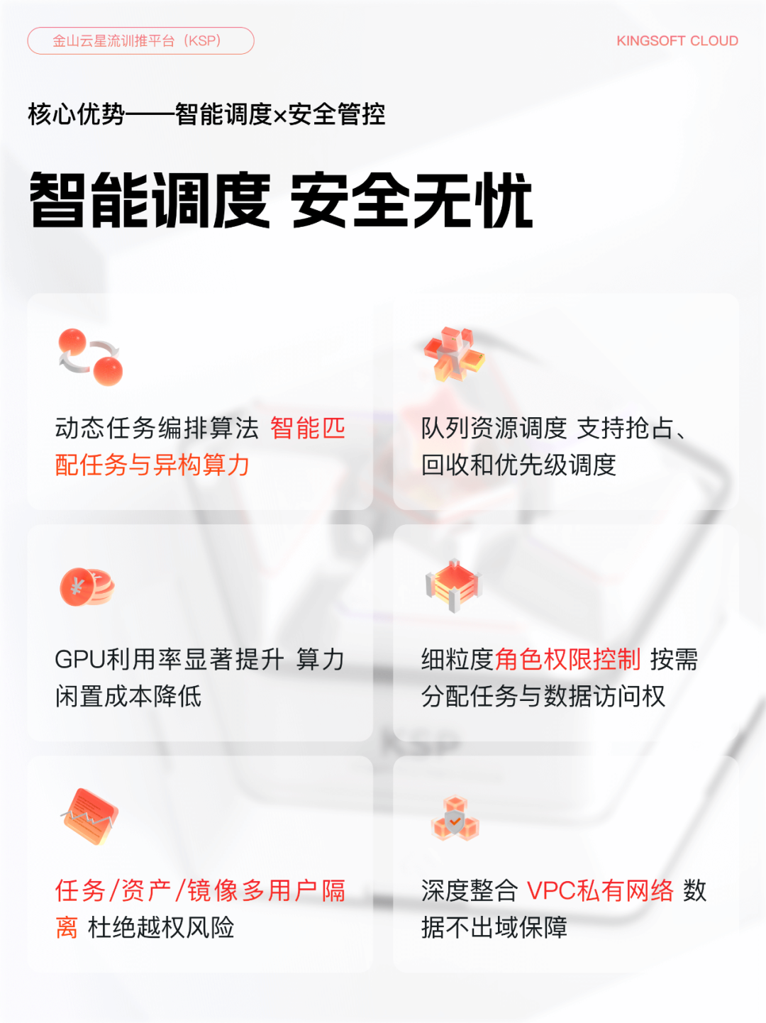 异构资源高效调度:通过动态任务编排算法与算力管理工具,平台能智能匹配异构算力资源与任务需求,保障GPU资源利用率,显著降低算力闲置成本;