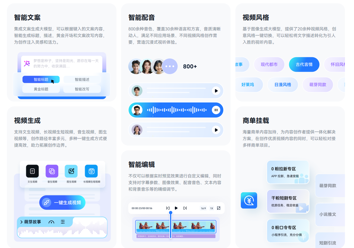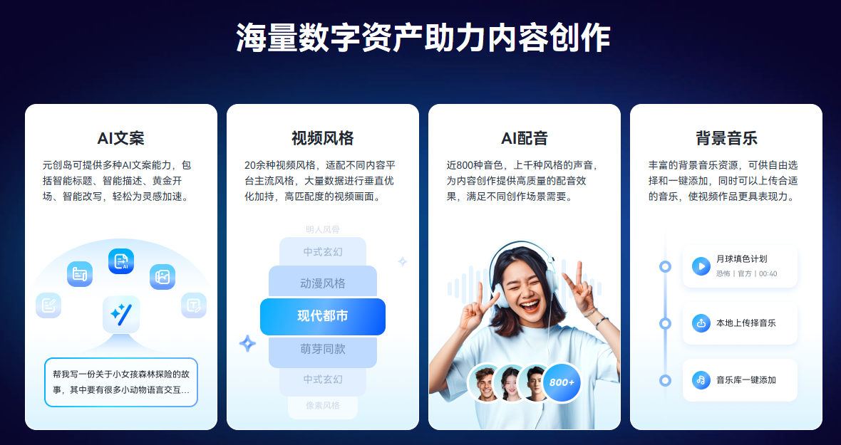 元创岛AI短视频创作平台,依托出门问问自研大模型'序列猴子',为创作者提供AI一键成片原创短视频,快速生成小说推文,短剧引流广告,书单及歌单等短视频内容。借助其精心设计的商业模式,用户不仅能够高效生成高质量的视频内容,还能提升其视频内容推广、变现效率。