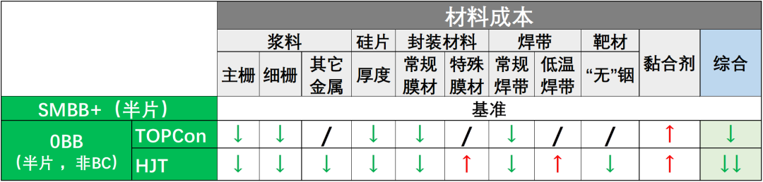 德朗聚黏合剂技术方案为0BB技术持续输出的价值可以从材料成本,组件性能及制造成本三个主要方面进行简单的梳理归纳。
